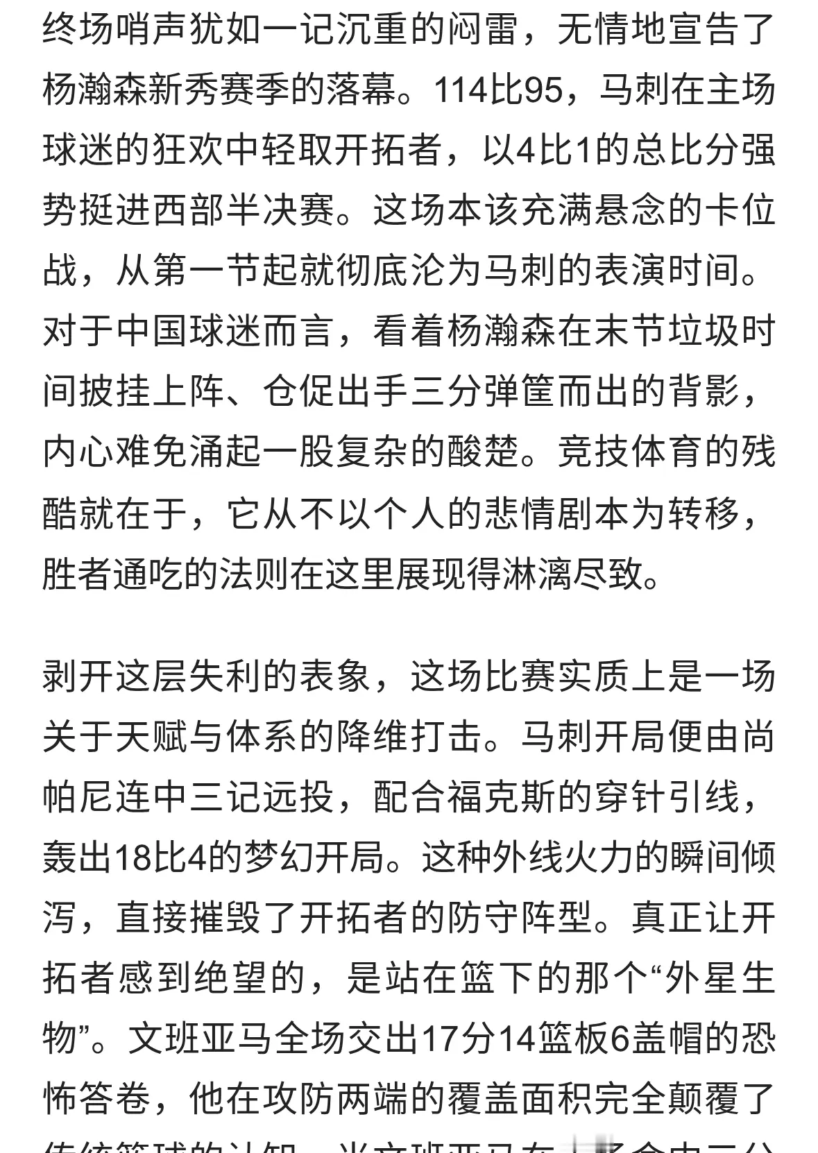 随着开拓者以1-4的总比分被马刺淘汰,杨瀚森的NBA新秀赛季就这样结束...