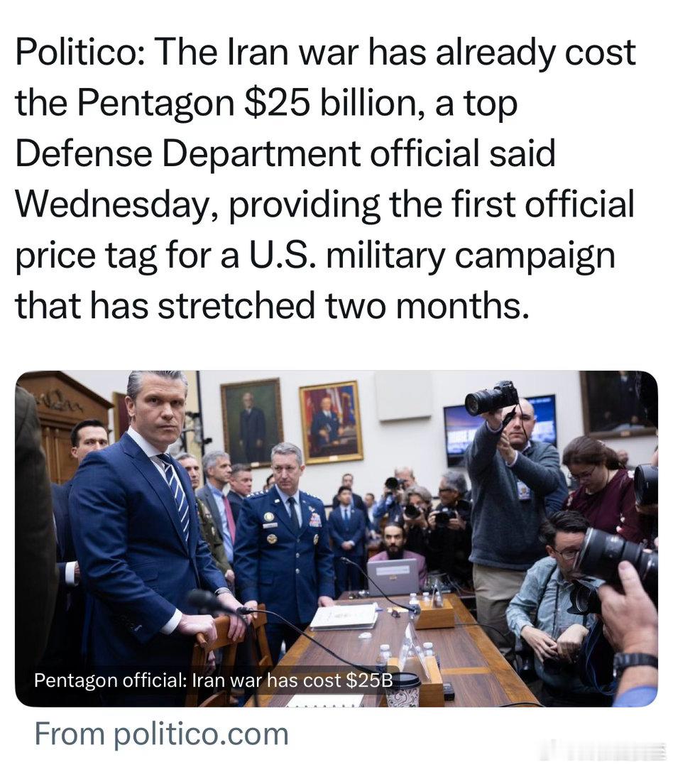 军方在国会听证,首次透露对伊行动两个月来的花费:两百五十亿美元 (数据来自国防部