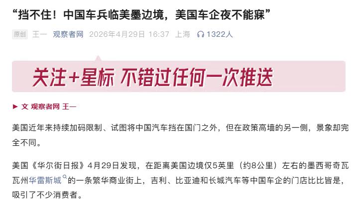 美国筑起高墙阻挡中国汽车,可墨西哥街头却满是中国车店。 为什么美国拼命拦着中国车?中国汽车真有这么大威力? 美国和墨西哥边境线不长,两边的汽车市场却像两个世界。美国这边关紧大门,对中国汽车征收超100%的关税,还不准中国软件用在新车上,想尽办法把中国车挡在外面。 可仅仅几公里外的墨西哥华雷斯城,中国汽车店一家挨着一家,吉利、比亚迪、长城的招牌特别显眼。街上到处都是中国车,当地人买得不亦乐乎,完全没有被限制的样子。 这种强烈对比特别有意思,美国越封锁,中国汽车在周边市场越受欢迎,就像水流被堵住,反而往旁边蔓延开了。 中国车能在墨西哥火起来,靠的不是运气,而是真本事。最直观的就是价格,美国市场已经没有2万美元以下的新车,中国车却能拿出1.7万美元起售的车型,普通家庭轻轻松松就能买。 不光便宜,技术还不落后。纯电、混动、燃油车全覆盖,车内配置丰富,卡拉OK、智能操控这些功能,同价位的美国车根本比不了。当地销售说,好多福特、雪佛兰的老客户,都转头买了中国车。 美国车企早就放弃了便宜的经济型轿车,一门心思造利润高的SUV和皮卡,刚好给中国车留出了市场空白。物美价廉的中国车,自然成了消费者的首选。 几十年前,美国车企根本没把中国汽车放在眼里。马斯克当初看到比亚迪电动车,还忍不住嘲笑,觉得中国车没竞争力。可现在,他亲口承认中国汽车公司是全球最有竞争力的。 这种态度转变的背后,是美国车企的深深焦虑。现代汽车社长直言,根本没法在价格上和中国企业竞争,硬拼只会亏钱。美国汽车产业每年能贡献1.3万亿美元,要是被中国车冲击,后果不堪设想。 为了保住市场,美国政客也坐不住了。参议员提议彻底封锁中国车企,不仅不让车进来,还不准美国企业和中国车企合作,甚至要求剥离中国企业持有的美国品牌股份。 其实这种场面并不陌生,上世纪70年代,日本丰田、韩国现代也曾凭借性价比冲击美国市场,让底特律三巨头节节败退。如今历史似乎要重演,只是主角换成了中国汽车。 尽管美国层层封锁,可中国汽车的脚步根本停不下来。在墨西哥,中国品牌已经占到四分之一的销量,加拿大也准备引进大量中国电动车,全球市场版图不断扩大。 美国消费者也早就动心了。调查显示,三成美国购车者愿意考虑中国品牌,比十年前翻了一倍多。当地经销商说,越来越多人问为什么没有便宜又好用的中国车。 现在已经有不少中国车以特殊方式进入美国,比如吉利和Waymo合作的自动驾驶出租车,沃尔沃的中国制造车型也卖到了美国。业内人士都坚信,中国车迟早会正式进入美国市场。 中国汽车靠着供应链和技术优势,一步步从低端走向高端,从小众变成主流。这种发展趋势,不是靠封锁就能阻止的。 美国的贸易壁垒,挡不住中国汽车的全球步伐。墙外开花的中国车,凭借性价比与技术站稳脚跟。从被嘲笑到被忌惮,中国汽车完成蜕变,进入美国市场只是时间问题。