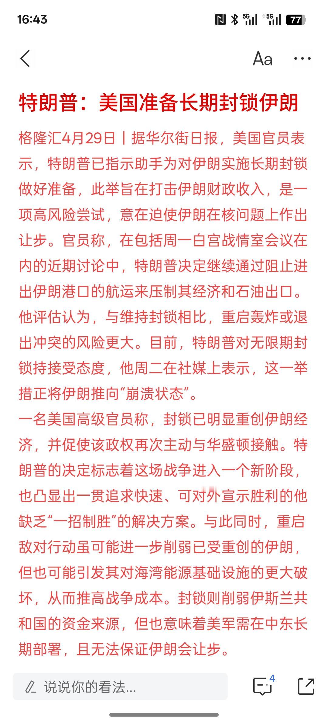 特朗普:美国准备长期封锁伊朗,双方之间就霍尔木兹海峡依然是僵持不下。 美国方面要与伊朗达成协议才肯松口!而伊朗方面让美国放开封锁荷尔蒙的海峡!才能接受美国进行谈判!伊朗方面也在提交相关谈判内容,所以现在双方都在为自己增加筹码!为下一轮的谈判做好准备!霍尔木兹海峡的持续封阻只会推高油价