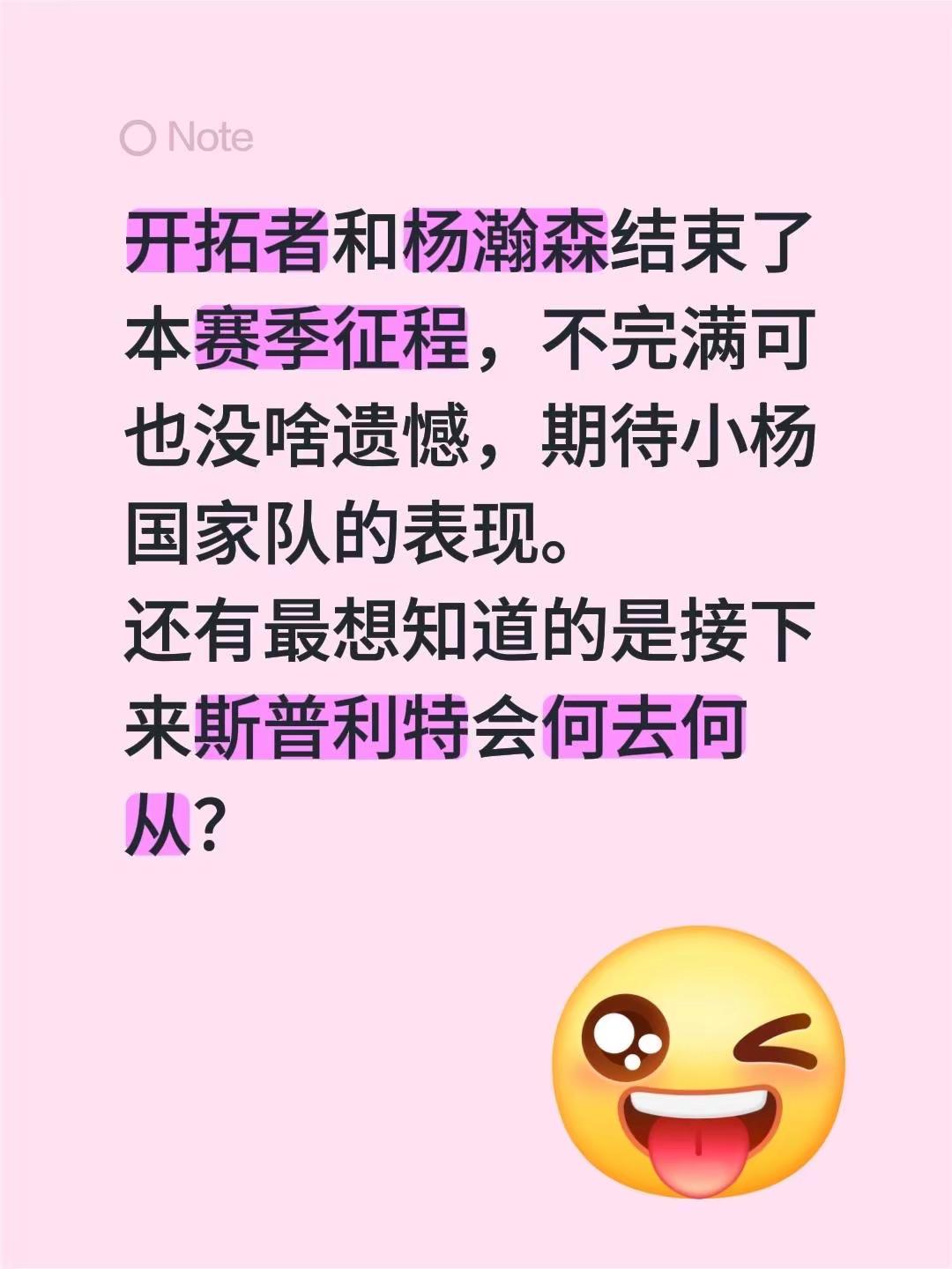 开拓者 和杨瀚森 结束了本赛季征程,不完满可也没啥遗憾,期待小杨国家队 的表现。还有最想知道的是接下来斯普利特 会何去何从?