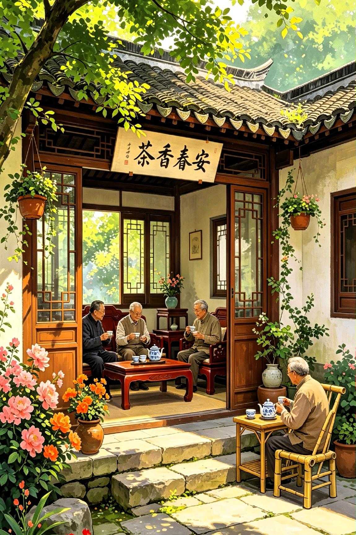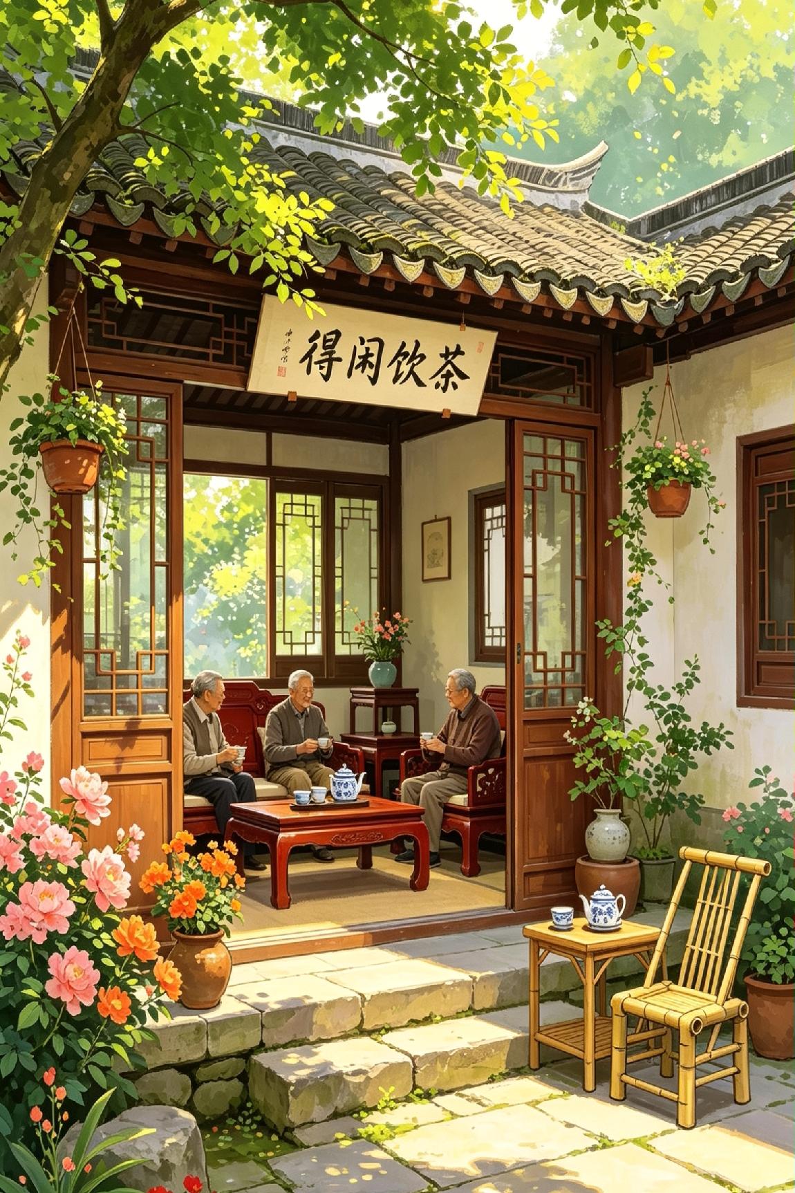 饮茶闲聚|偷得浮生半日闲 爱古风、喜品茶的友友请留步! 人间最惬意的时光,莫过于三五知己闲坐庭院,煮茶对坐,闲话流年。 远离俗世纷扰,放下生活匆忙,一盏清茶入喉,满心皆是安然。 今天为大家奉上一首品茶闲聚七言诗,意境清雅,韵味悠长。 《饮茶闲聚》 庭院清风绕画梁,高朋雅聚品茶香。 匾额静挂书闲趣,花木疏庭映暖阳。 把盏闲谈尘世事,临风慢度好时光。 浮生若得从容处,半盏清茶慰寸肠。 【后絮】 一方小院,几盏清茶,三五老友闲话家常,便是人间顶配的温柔。 不追名逐利,无需,奔波劳碌,得闲饮茶,静心度日。 愿往后岁月,我们能守一份闲心, 于红尘烟火中,觅清欢,享安然, 岁岁无忧,日日自在。 品茶论联 浮生半日偷得闲 饮茶诗 闲适诗词 茶桌闲语