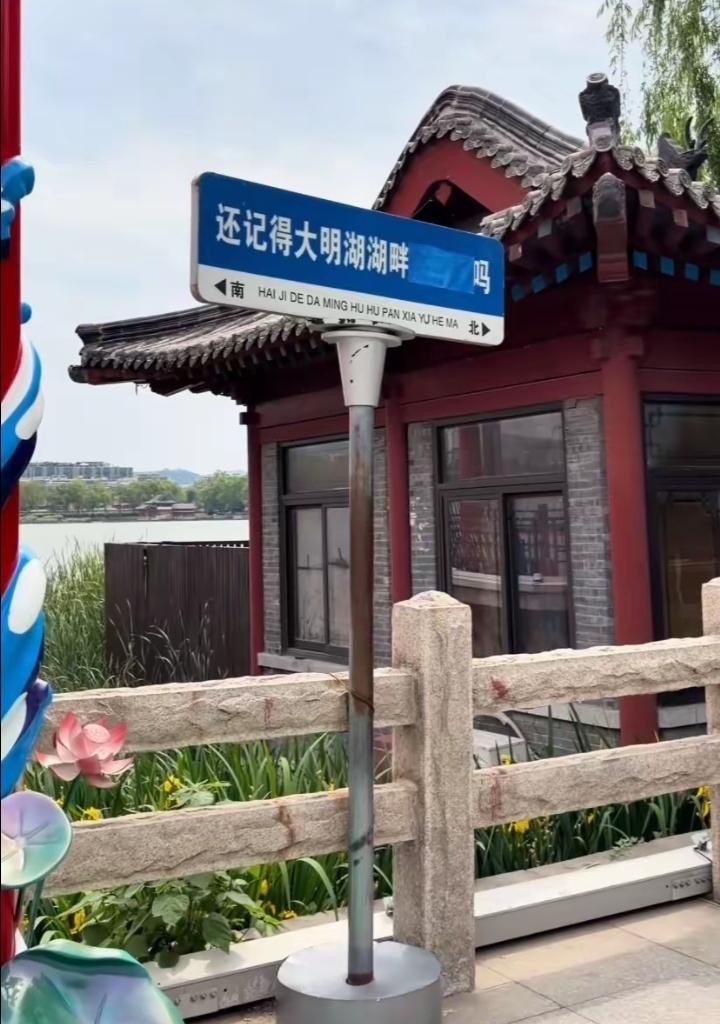 济南大明湖最近又火了,景区里带“夏雨荷”的地标路牌被悄悄改掉,名字直接被抹去,只留景点名,这波操作让网友吵翻了天。 想当年,一句“还记得大明湖畔的夏雨荷吗”,让虚构的“夏雨荷”成了大明湖流量密码,带火无数打卡路牌和网红灯组。如今官方把网红梗路牌撤掉,说法是不想过度消费虚构IP,要回归大明湖千年历史文化,突出历下亭、铁公祠等真古迹。 其实“湖畔雨荷”灯组还在北岸,只是路牌去网红化。你觉得:景区该靠历史底蕴吸粉,还是留着“夏雨荷”抓流量?