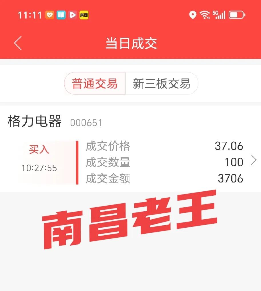 格力股票我赚钱了! 2025年8月28号,我开始买格力股票,第二天股票除权后,股价就一直往下走。 我的计划,每个月用退休金购买格力100股,截止2026年4月27号,共持有格力股票700股,亏损时最多的时候达1300元。 期间,还做了两次小波段,降低了一点点成本。 但是我不气馁,坚信格力品牌的力量。 就在上个星期五,我还以37.07元用刚刚到手的退休金,买了100股格力(见下图)。 2026年4月29号凌晨,格力公布年报和季报,太爽了,虽然年报一般般,但季宝却让我眼前一亮。 首先,分红派息10派20元,铁板钉钉! 其次,是第一季报利润增长3%,这一点出人意料之外。 最后,更是王炸,百亿资金回购注销。 这可是相当的厉害! 格力拿出50~100亿真金白银回购股票,回购上限价格给到56.55元/股,最核心的是,明确了不低于70%回购股份将直接注销、减少注册成本。 这可是真金白银的给股东让利呀。 看到这,我激动的泪水都要流下来。 条友们,摸着良心问问,在中国a股5000多家上市公司,有多少家能像格力这样豪爽,这样把股东的利益放在第一。 还是那句老话,是金子就会发光的。 选择了格力,就坚定持有,不要听一些人不三不四,造谣惑众。 做股票玩的就是一种心态,不以涨跌喜悲,耐住寂寞,可守繁华。 昨天,格力冲高到40.88元,涨幅高达10%以上,我已解套,并有了一些利润,为了预防风险,落袋为安,我分别在40.81和40.49元共卖出400股。 剩余300股为底仓,等待格力股票再回落到38.5~39元之间,再分批买进! 买格力股票,坚定持有,并不是要你“死守”,因人而异,做一点波段操作,也是降低成本的一个好的方法哟。 未来3~5年,我将和格力永远在一起! 条友们,格力股票暴涨,我又做了一次高抛低吸,这样可行吗?