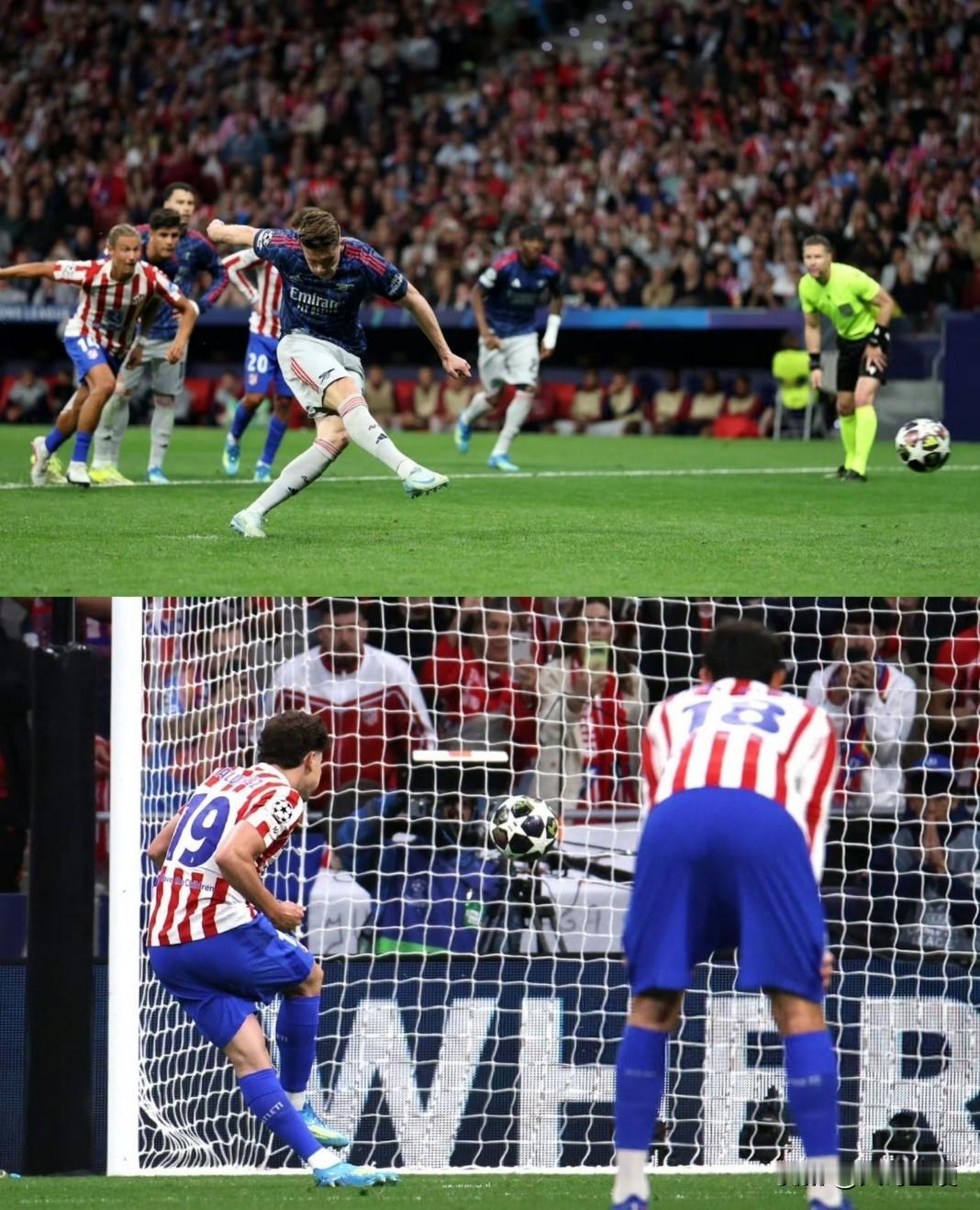 一场枯燥无比的1:1!没熬夜看马竞vs阿森纳的比赛,真的是一个明智的选择[马思纯的微笑] 北京时间4月30日凌晨,25/26赛季欧洲冠军联赛半决赛首回合,马竞对阵阿森纳的比赛正式打响[奋斗] 正如赛前球迷预料的一样,这是一场枯燥的欧冠半决赛首回合,马竞主场 1:1 战平阿森纳,两队进球均来自点球,运动战进球为零⚽️ 比赛进行到第45分钟,哲凯赖什造点,亲自主罚命中,阿森纳客场1:0领先马竞⚽️ 比赛进行到第56分钟,本-怀特手球送点,阿尔瓦雷斯点球破门扳平比分,马竞1:1阿森纳⚽️ 除了这两个点球,剩余时间就是两队锋线球员不断的浪费机会,再就没有什么可看的了[吐彩虹] 估计看完昨天凌晨大巴黎5:4拜仁的比赛,再看今天凌晨马竞1:1拜仁这场球,可能真的会把球迷看睡着了😴 评论区甚至有球迷晒出两张马竞1:1阿森纳这场欧冠半决赛,与大巴黎5:4拜仁的的搞笑图,这也太形象了吧,可以说是传神了[允悲] 不得不说,阿森纳需要分神联赛,马竞一贯的摆大巴,因此不但这场欧冠半决赛首回合不好看,估计次回合也是这个样子,对于比赛的精彩程度,球迷们就别抱太大希望了[吃瓜群众]