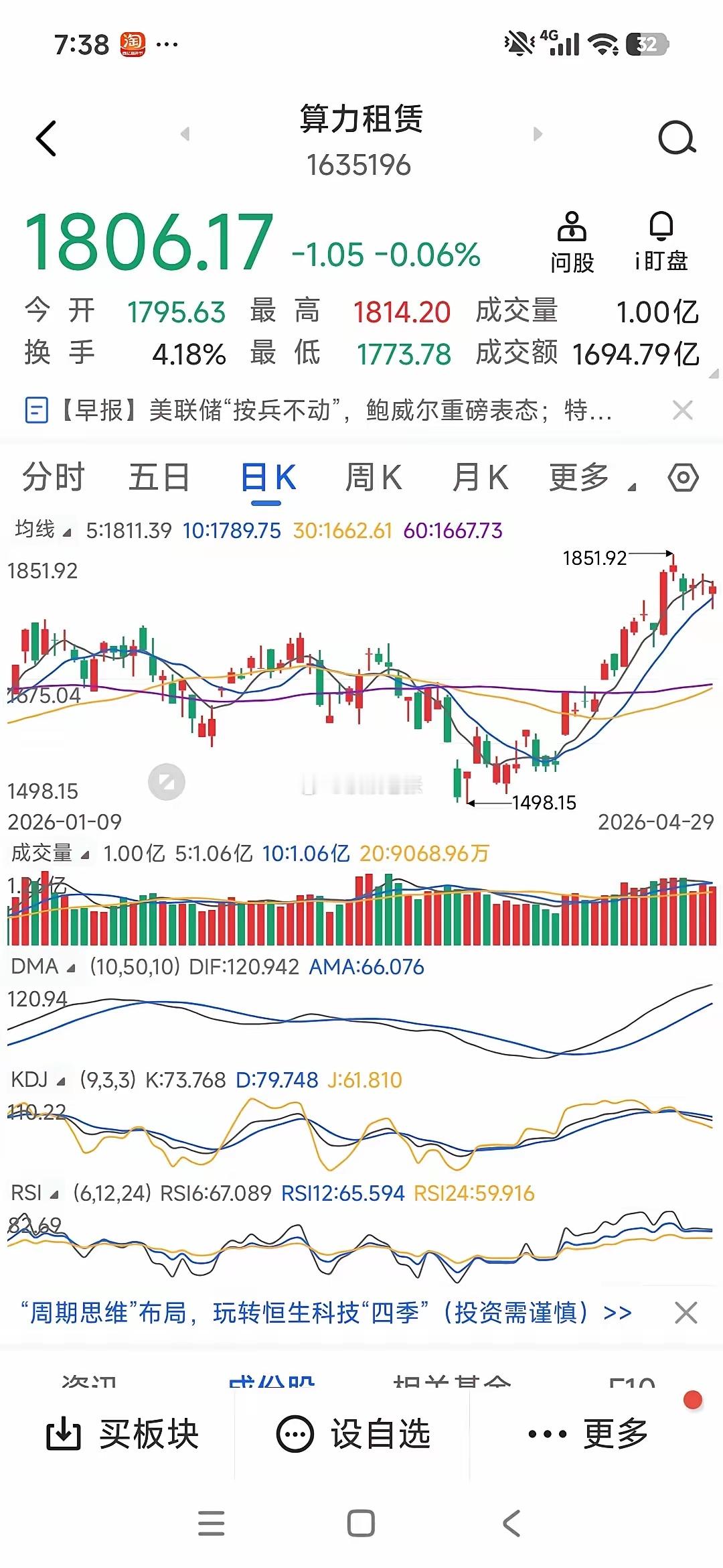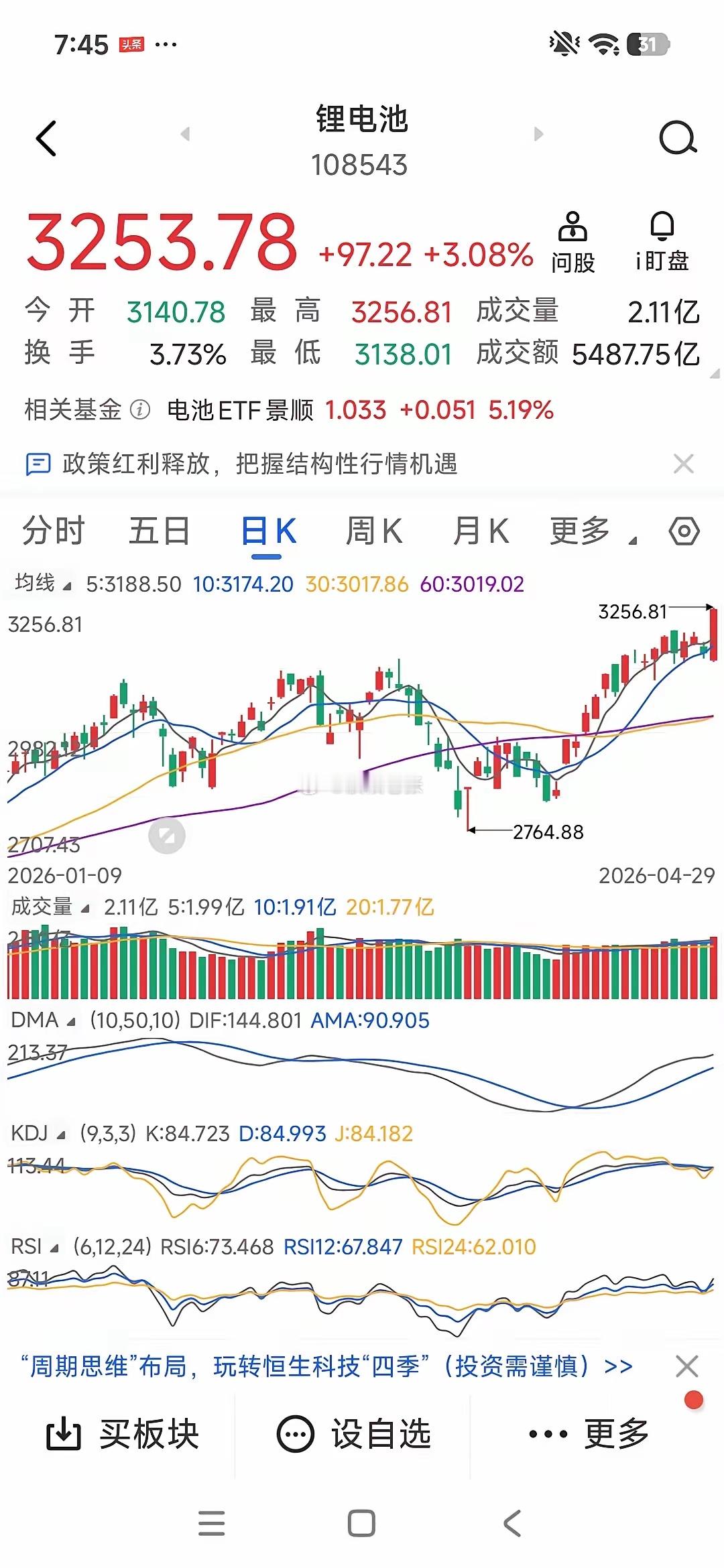 今天值得关注的板块。查看一下板块的K线图,技术形态比较良好的有下面几个:半导体,存储芯片:国产替代,叠加美股闪迪、美光的大涨。电力设备:算力尽头是电力,处在相对低位。算力租赁:算电协同,连收十字星,看望突破前期高点。锂电池:昨天长阳突破,创出新高。固态电池:昨天长阳突破,创出新高。个人观点,不构成操作依据。