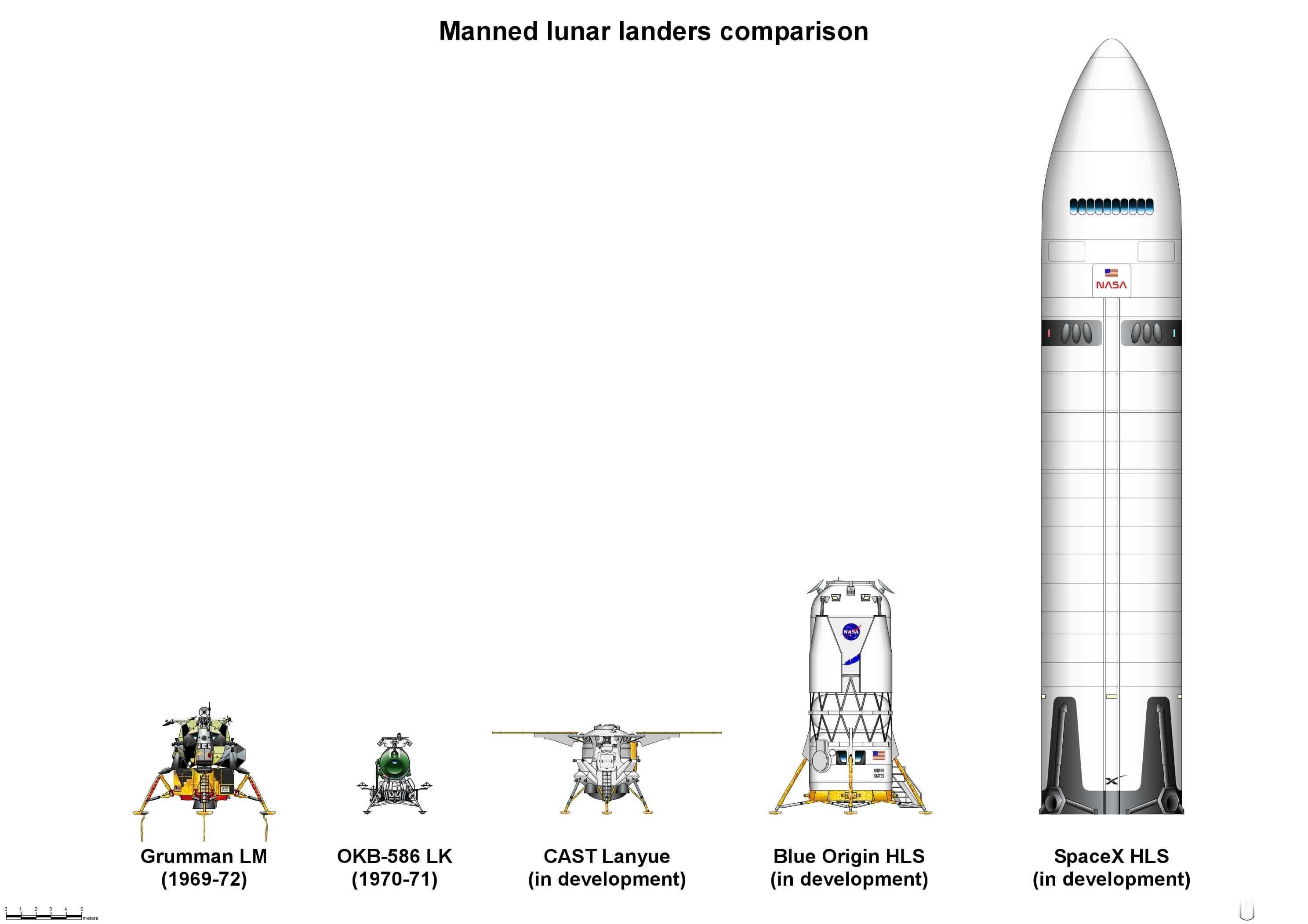美国阿波罗月面着陆器前苏联LK月面着陆器中国揽月月面着陆器美国蓝月亮HLS月面着陆器美国星舰飞船HLS月面着陆器
