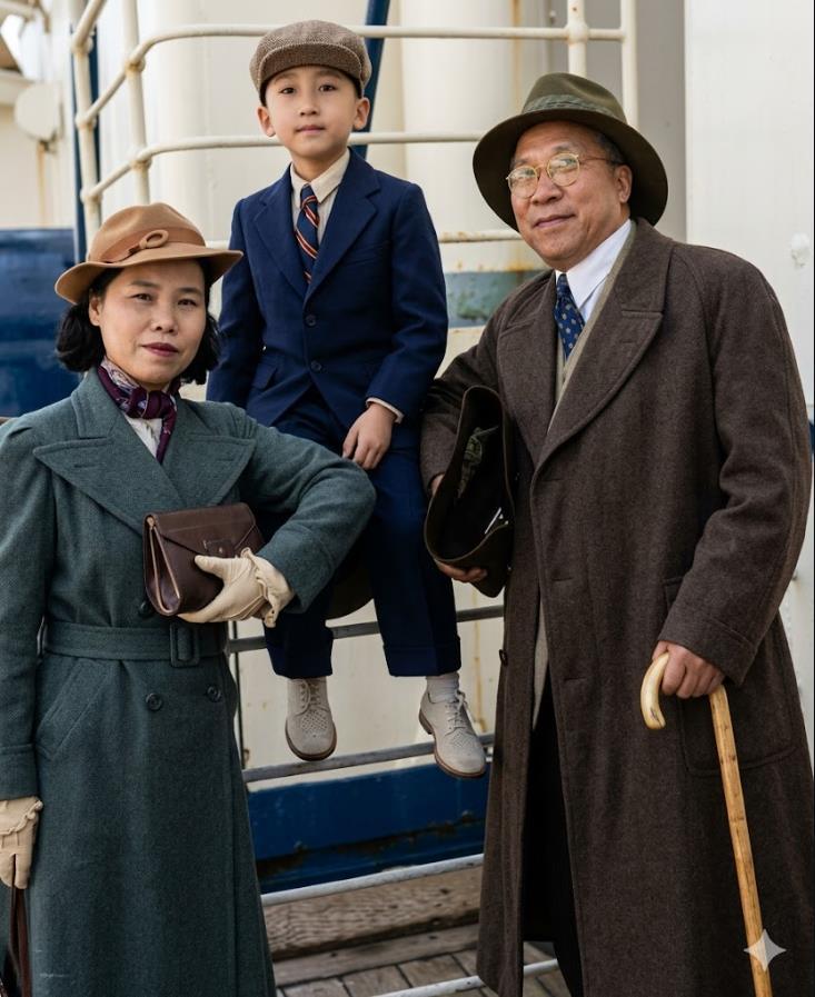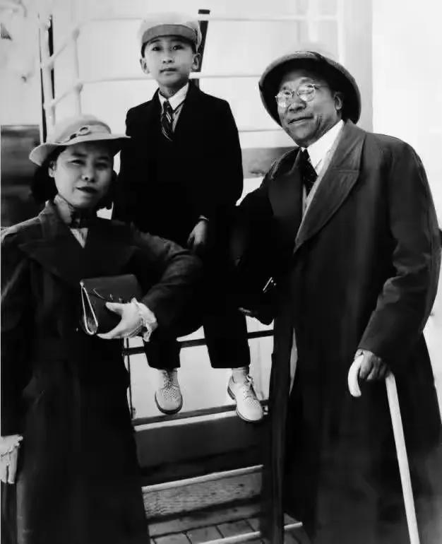 1937年,归国轮船上的这张合影,是杨虎城一家在自由阳光下的最后定格。 西安事变后,这位力促国共合作的爱国将领,被迫携眷赴欧“考察”。镜头里,他戴着礼帽风衣,镜片后的眼神沉郁而坚定,满心都是归国抗日的热望;夫人谢葆真握着皮包,衣着精致,藏着乱世里难得的从容;次子杨拯中坐在舷梯上,一身西装领带,少年模样尚不知前路凶险。 彼时的他们还不知道,这趟归国的轮船,载着的不是光明,而是长达十二年的囚禁,与最终的殉难。后来杨虎城被囚,谢葆真、杨拯中随他一同身陷囹圄,最终都倒在了重庆渣滓洞的枪声里。