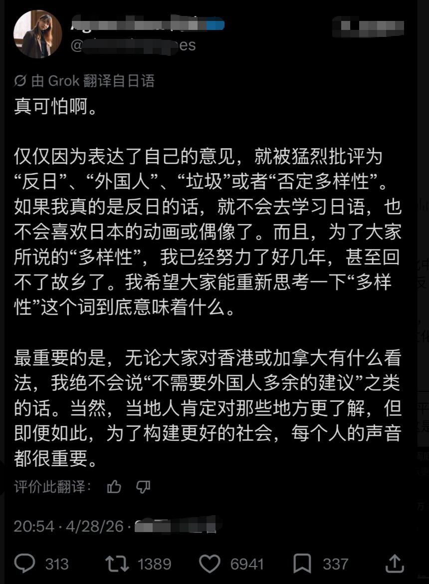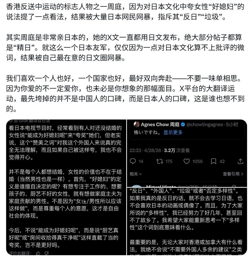香港一大殖子天天精日媚日, 结果现在被日本人啪啪打脸, 被日本网暴,骂她反日、垃圾 其实她是非常亲日媚日的, 她的po文一直都用日文发布, 从不用中文发布, 绝大部分帖子都是“精日媚日”, 就因为对日本夸女性“好媳妇”的说法, 提了一点看法, 说不太尊重女性的意愿, 结果被大量日本网民网暴, 指斥其“反日”“垃圾”。 这就是大殖子媚日精日的下场, 日本人都看不起你! 真是丢人现眼啊。