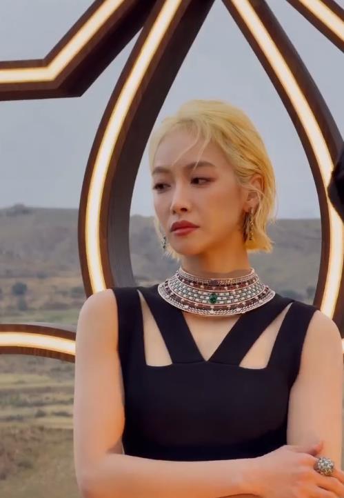 最近宋茜在出席时尚活动的时候搭配了一件黑色的吊带裙,看上去特别的高贵,也很有魅力。 宋茜搭配的这件裙子有着很好的设计感,而且极为贴身,能够让她秀出完美的身材曲线。 她脚踩黑色尖头高跟鞋,整个人的个子变得更高挑了,看起来像个靓丽的模特。 宋茜脖子上搭配了银色的项链,凸显出了满满的高贵感,还很有奢华之美。 她留着金色的短发,还画着精致的妆容,也很有中性时尚风情,确实是特别的时尚。总的来看宋茜这回很好的彰显出了国际大牌明星魅力。