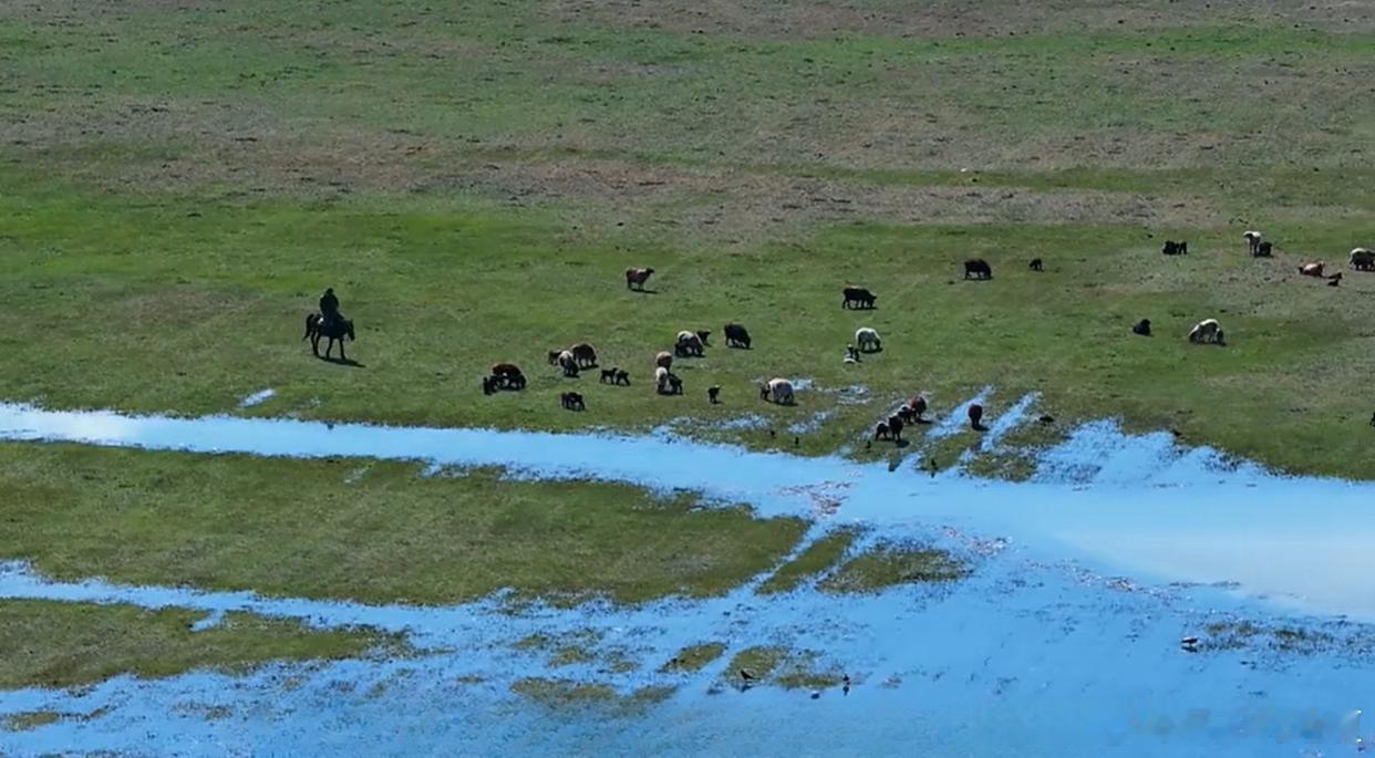 走进塔城库鲁斯台草原,微风轻拂过无垠绿浪,碧空澄澈流云舒展,湿地如镜倒映天光,青草一路绵延向远方。飞鸟掠过天际,羊群散落草间,人与自然在此温柔相拥,铺展开一幅绝美的生态画卷~