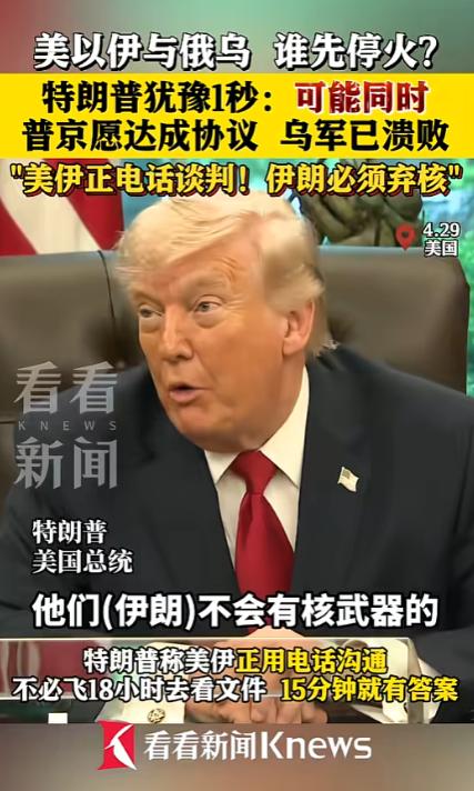 这两天国际圈的瓜都被特朗普包圆了,一天之内他连抛3个重磅消息,每一句都能让全网炸开锅。 昨天特朗普先是与普京进行了时长一个半小时的跨国通话,随后便在镜头前对外公布,他们正和伊方通过电话直接开展谈判。 甚至还放出了“俄乌和美伊冲突可能同时停火”的消息,直接给全球网友整得目瞪口呆。 先说说和普京的这场通话,特朗普说俩人聊得特投缘,还给俄乌冲突出了个短期停火的建议,拍着胸脯打包票说普京大概率会采纳。 结果没一会儿,他就对着媒体大吐苦水,直言乌方早就已经打输了,被记者追问哪场冲突会先结束时,他愣了一秒就甩出一句“可能同时”,这反应快得跟提前排练过一样。 再看美伊这边,特朗普直接推翻了以前磨磨唧唧的谈判模式,说现在不用飞18小时去参会、翻一堆厚厚的文件,直接打个电话沟通15分钟就能出结果! 但狠话也放得够硬,谈判的唯一前提就是伊方必须彻底放弃核武器,还放话“他们绝对拿不到核武器”,同时坚持要继续封锁伊朗的海上通道。 可伊方也不是软柿子,当场就硬刚回去:敢封霍尔木兹海峡,就用前所未有的军事行动怼回去! 说真的,特朗普这波操作看着又飒又高效,其实全是即兴发挥。 电话里说的“15分钟解决核问题”,听着跟菜市场砍价似的,可伊朗那边守了这么久的底线,哪是说动就能动的?说乌军已经溃败,更是直接戳了乌克兰和欧洲的肺管子。 说白了,他想靠几句狠话、几个电话就给冲突按下暂停键,可积了这么久的矛盾,哪是说停就能停的? 这场“同时停火”的大戏,到底是真能落地,还是又一场嘴炮表演,估计没人说得准! 信息来源:看看新闻knews《美以伊与俄乌 谁先停火?特朗普犹豫1秒:可能同时普京愿达成协议 乌军已溃败“美伊正电话谈判!伊朗必须弃核"》 2026年4月30日报道