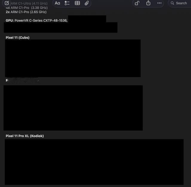 不过,在图形部分,这次的爆料并非全是利好。 爆料信息称,Tensor G6 将采用 PowerVR C-Series CXTP-48-1536 GPU,这是一款已经问世数年的图形核心。 尽管Google有可能会使用经过更新或定制的版本,但从目前的线索来看,Pixel 11 系列在游戏性能方面大概率不会主打“游戏神机”这一卖点。