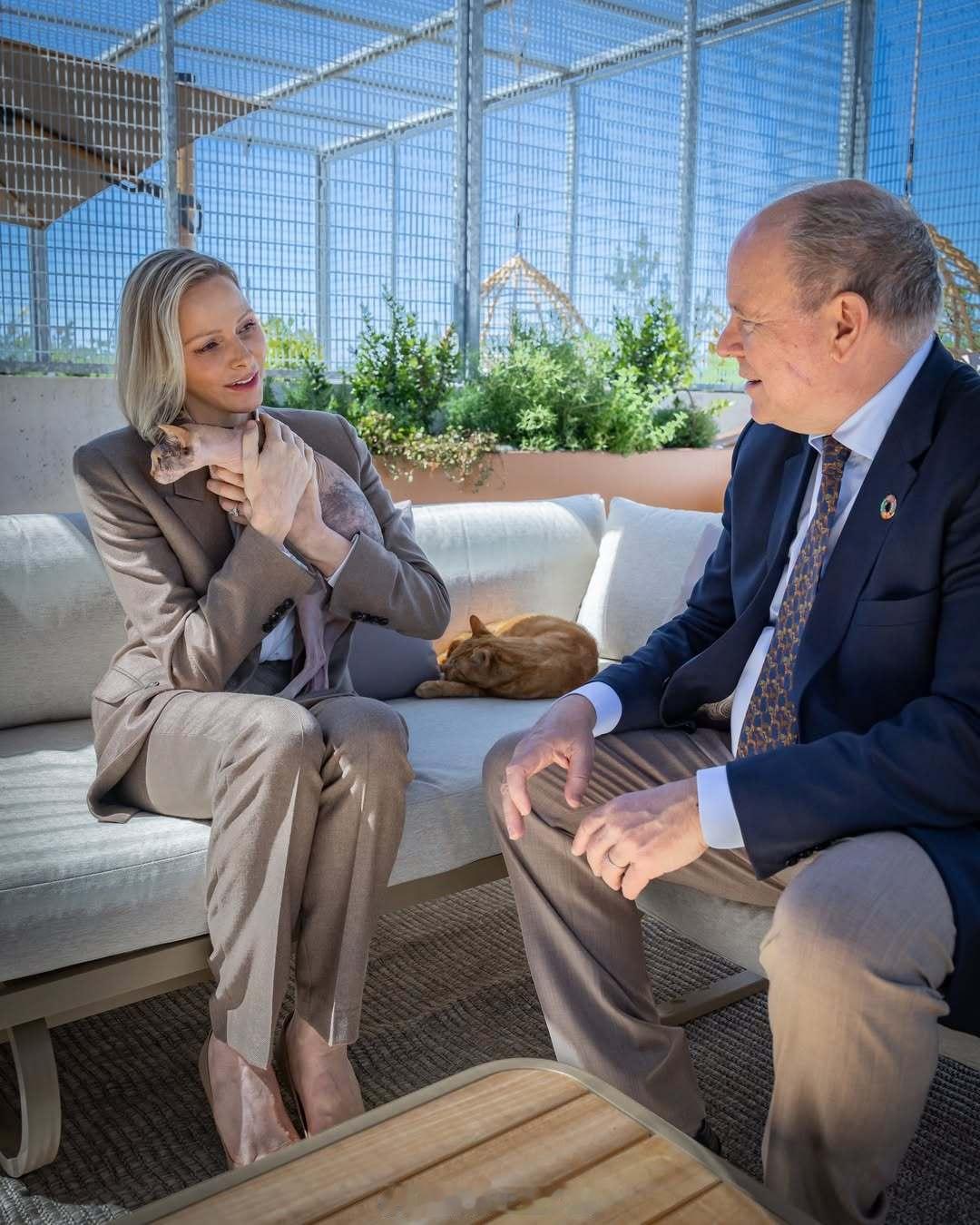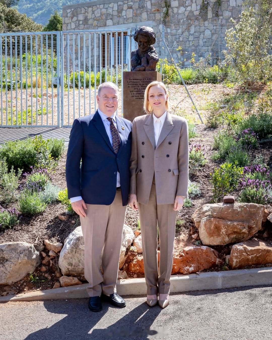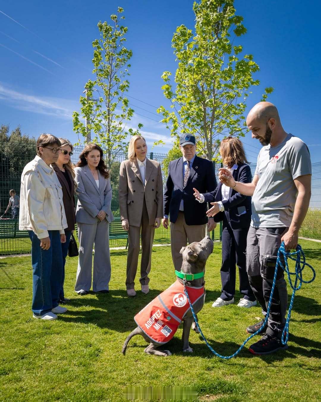 4.29 摩纳哥亲王阿尔贝二世和王妃夏琳出席防止虐待动物协会的收容所翻新后落成仪式,同场还有斯蒂芬妮跟小女儿卡米、阿尔贝表姐的女儿梅兰妮以及夏琳小弟等