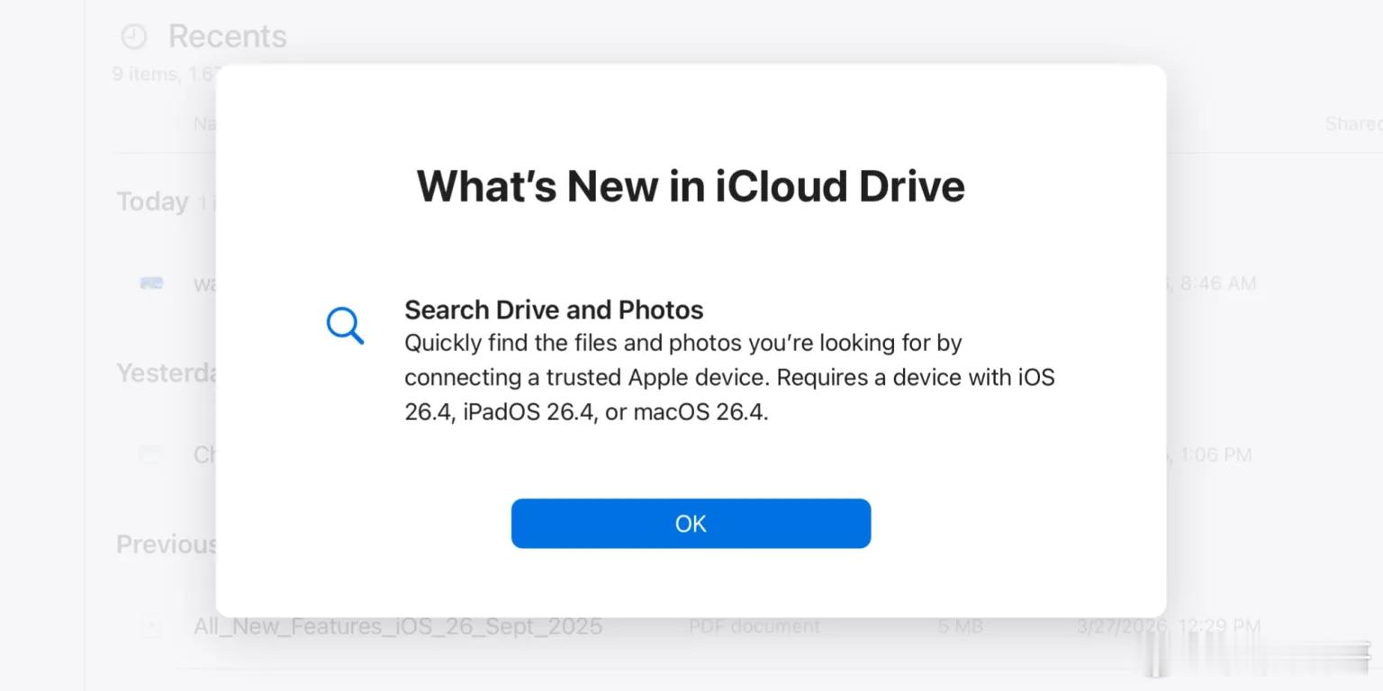 而在iOS 26.4中,Apple为iCloud官网带来一项关键升级,让网页版iCloud变得更好用:现在可支持文件与照片搜索。