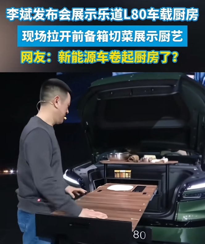 现在的新能源车功能是越来越五花八门了,乐道L80发布会上,竟然从车头上拉出来一个“厨房”,现场展示起来了厨艺,谁会为了这个小厨房买这样的车呢?真想出去还要做菜的,谁不买个房车啊!