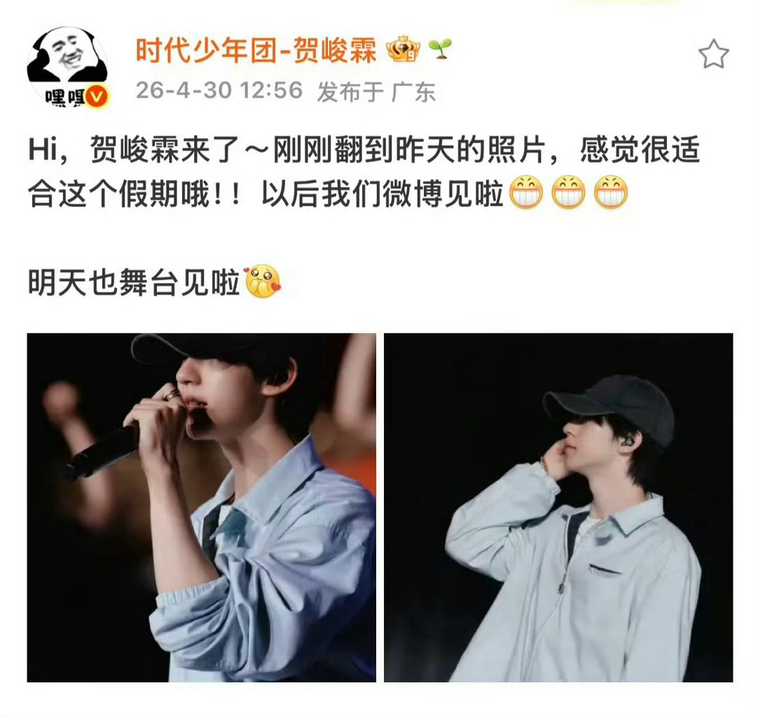 贺峻霖callback十年前发的微博 时光轮回暖心呼应!文案照搬十年前第一条博文,时间也高度相近。从青涩懵懂的“以后见”,到如今从容坚定的“舞台见”,真的太有心了!
