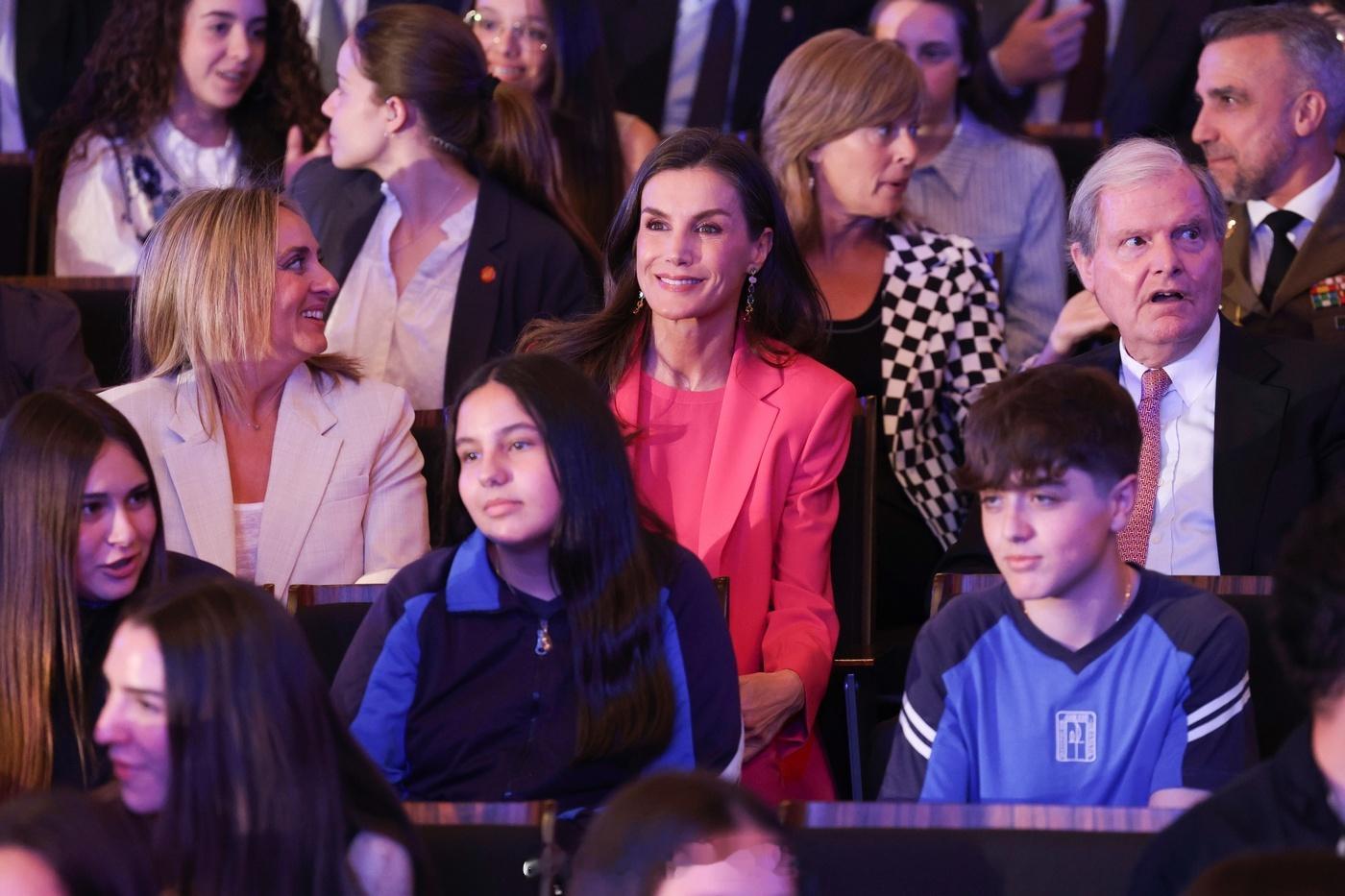 4.29 西班牙王后莱蒂齐亚出席颁奖礼,全套艳桃红都来自hugu boss