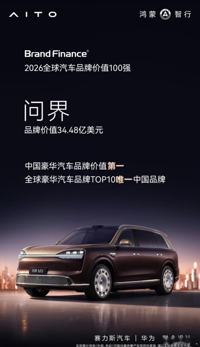 2026全球豪华品牌TOP 10 里唯一的中国品牌就是问界,海外媒体评估品牌价值34.5亿美元,位居中国豪华汽车品牌第一!说明它在高端市场的路走通了。你看问界M6上市15分钟就大定破万。国产车 肯定不能老走低端廉价市场,都在充高端市场,比亚迪、奇瑞这些都一样,都在涨价了,因为纯打价格战的内卷没有下限,也没有赢家,所以你不能老看谁销量多,不挣钱的话,卖的越多越没有意义…… 鸿蒙智行AITO问界大V聊车新能源汽车
