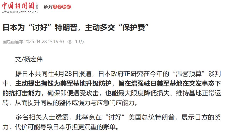 面对同一个美国大哥,东亚两个铁杆盟友居然走出了完全相反的路! 28日,日本共同社那边刚放出消息,说日本政府正在研究今年的“温馨预算”谈判方案,打算主动多掏钱给驻日美军基地加固抗打击能力。说白了就是日本自己花钱,帮美国大兵修更结实的碉堡,把基地往地下搬,加厚防爆墙,生怕美军在东亚待得不舒服。 同一天,韩国总统李在明在青瓦台开国务会议,直接对着话筒反问:为什么老有人觉得没有美军,韩国就守不住自己?他撂下一句硬话:国家就要靠自己。一个抢着往美国手里塞支票,一个公开喊话要独立,面对同一个美国大哥,日韩这反应差得可不是一星半点。 先说日本,它这么上赶着加钱,真不是钱多烧的,根子在于它那套安全体系先天就“缺钙”。日本战后宪法第九条把战争权给放弃了,七十多年来国家安全这根弦全拴在《日美安保条约》上。 时间一长,这种依赖就成了政客们的“肌肉记忆”,他们打心底里觉得,离了美军,日本的安全伞就得漏风。所以你看,哪怕日本国债都堆到1300万亿日元了,民生开支紧巴巴,但对美军的预算那是一分不能少,还得主动往上加。 这次所谓的“温馨预算”,名字听着暖心,其实就是笔越滚越多的“保护费”。现行协议(2022到2026年度)五年总额约1.0551万亿日元,平均每年日本要掏2100多亿日元(约合14亿美元)。 就这,日本还嫌不够,主动提出把原本该美军自己搞的战时工事建设——比如基地地下化、防电磁脉冲系统——也揽过来买单。为啥这么急?下半年才正式谈判,现在就提前研究方案,明摆着是冲着一个人去的:美国总统特朗普。 特朗普上个任期就嫌日本掏钱少,这次回来更是把“盟友得多出钱”挂在嘴边。日本这是怕被“老大”嫌弃,赶紧提前交“投名状”,用真金白银换一张安全保单,生怕美国战略收缩把自己给撂下。 日本这些年搞的所谓“军事正常化”,买F-35、搞远程导弹、和澳大利亚合作造舰,看着挺唬人,但每一步都得看美国脸色,核心情报和打击体系离不开美军支持。这种骨子里的依附,让日本越是想展示强硬,就越是得抱紧美国大腿,形成了一个走不出的怪圈。 反观韩国,李在明敢这么硬气,手里是真有筹码的。他在会上直接甩出数据:韩国军力水平世界第五,年度国防预算支出是朝鲜一年国民总产值的1.4倍,国防产业出口已跃居世界第四位。 2026年韩国的国防预算高达66万亿韩元,增幅7.5%。自己能造主战坦克、先进潜艇、战斗机,军工订单接到手软。钱是自己赚的,武器是自己造的,实力摆在这儿,李在明的底气自然就足。他这番话,可不是简单的鼓舞士气,而是瞄准了一个核心目标:收回“战时作战指挥权”。 这是韩国心头的一根刺。平时没事还好,一旦真打起来,韩国几百万军队的指挥权不在自己手里,而在驻韩美军司令那儿。对于一个主权国家来说,这滋味可不好受。所以李在明政府把2026年定为“战权移交元年”,投入巨资研发国产指挥系统,就是要彻底撕掉这块“遮羞布”。 再加上之前美国为了中东局势,从韩国抽调“萨德”、“爱国者”系统的弹药,连招呼都不怎么打,让韩国国内看清了所谓“安全承诺”的脆弱性——美军永远是先顾自己的全球利益。这种“被当成棋子还随时可能被牺牲”的憋屈感,成了韩国推动战略自主的最大动力。 所以,面对美国同样的压力,日韩走出两条截然不同的路,根本在于两国的“安全基因”不同。日本是“依附型安全”,越感到外部威胁,就越想砸钱把美国拴在身边,哪怕牺牲长远的经济自主性。 而韩国走的是“转型型安全”,外部环境越复杂,它寻求独立自主、把命运掌握在自己手里的动力就越强。一个还在小心翼翼地续费求保护,另一个已经开始琢磨怎么自己当掌柜了。 这短短24小时的对比,把两家的底牌亮得清清楚楚。靠给别人站岗、花钱买来的安全感,终究是镜花水月;只有实打实的硬实力和独立自主的决心,才是国家安全的真正压舱石。