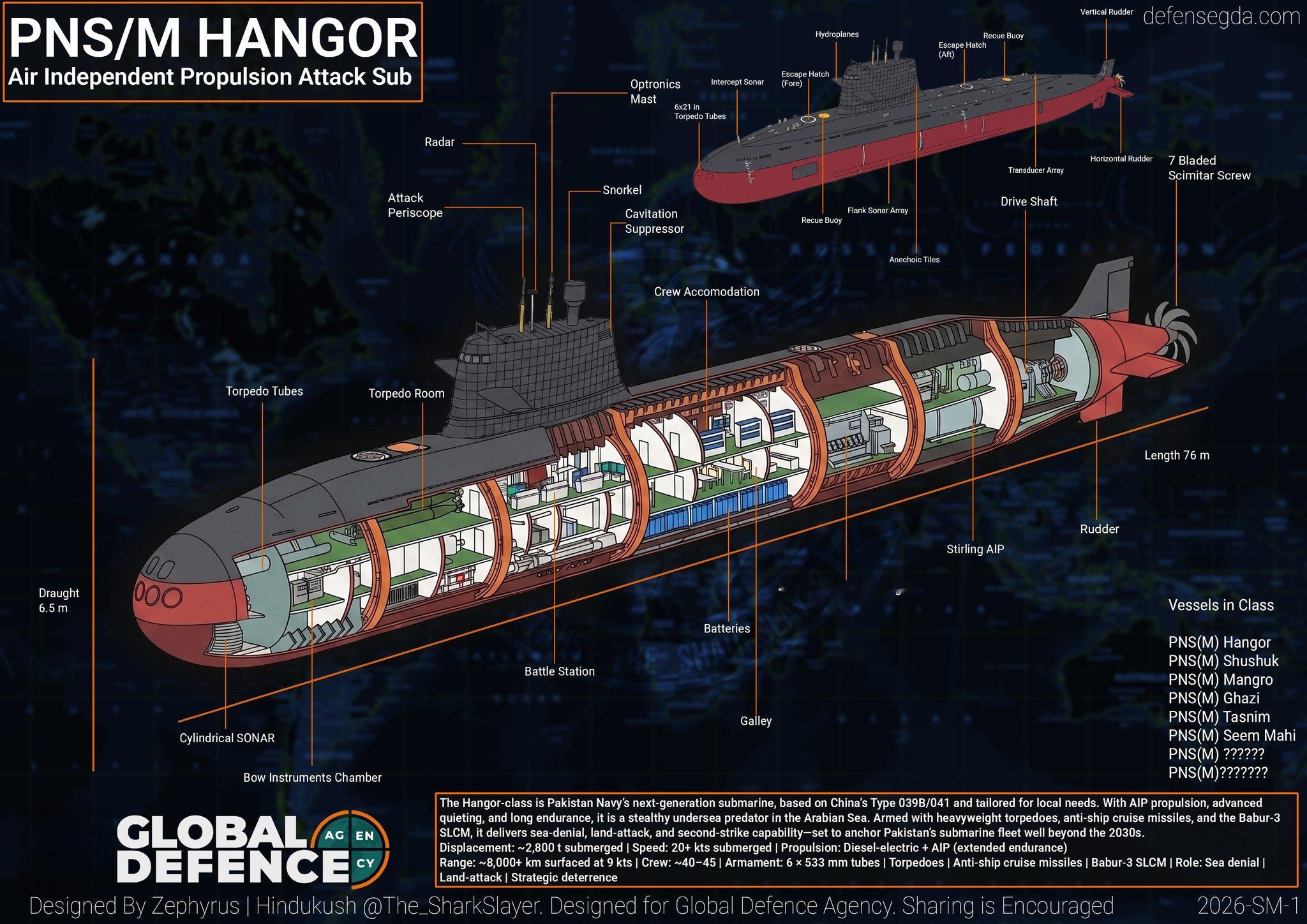 巴基斯坦采购的“汉果”级(Hangor)是中国039B潜艇的外贸版,也是一款AIP潜艇,放在全球也是同类型顶级的存在了。巴海军一共订购了8艘该型潜艇,其中前4艘在中国建造、后续4艘由巴基斯坦组装建造,合同总价值约40-50亿美元。
