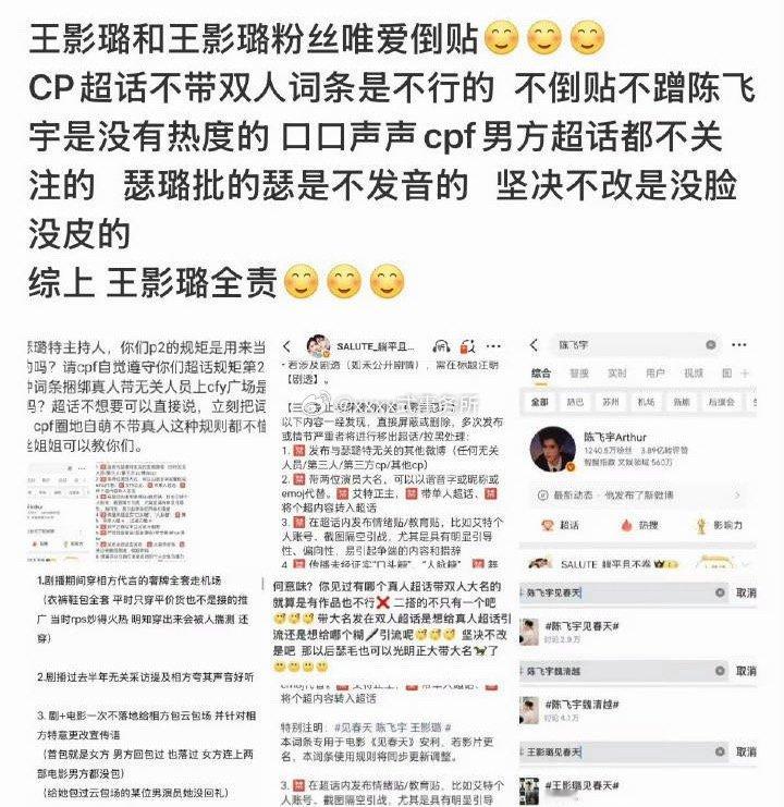 瑟璐特cpf超话主持人ct带的是陈飞宇王影璐合作电影见春天双人,超话多人只关注女方一人,据说瑟丝好言相劝执意带真人大名双人词条
