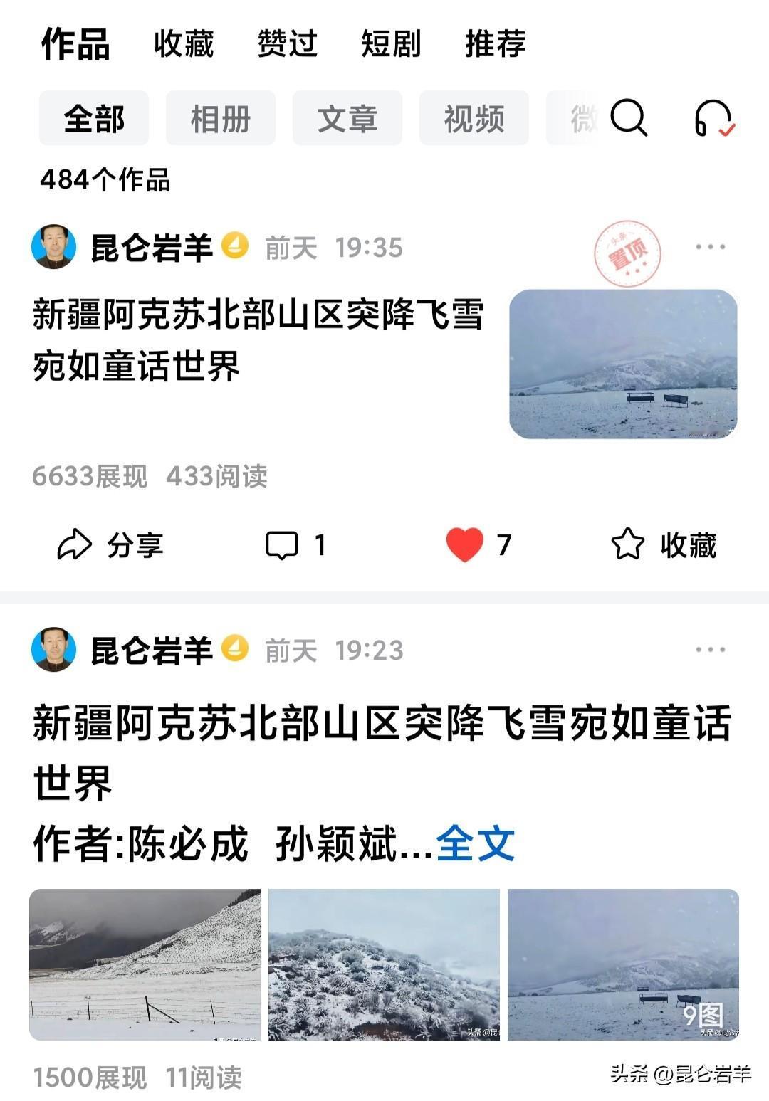 新疆阿克苏北部山区突降飞雪宛如童话世界 作者:陈必成 孙颖斌 正